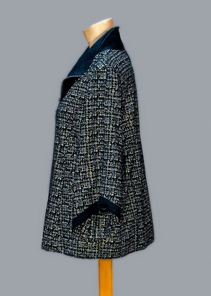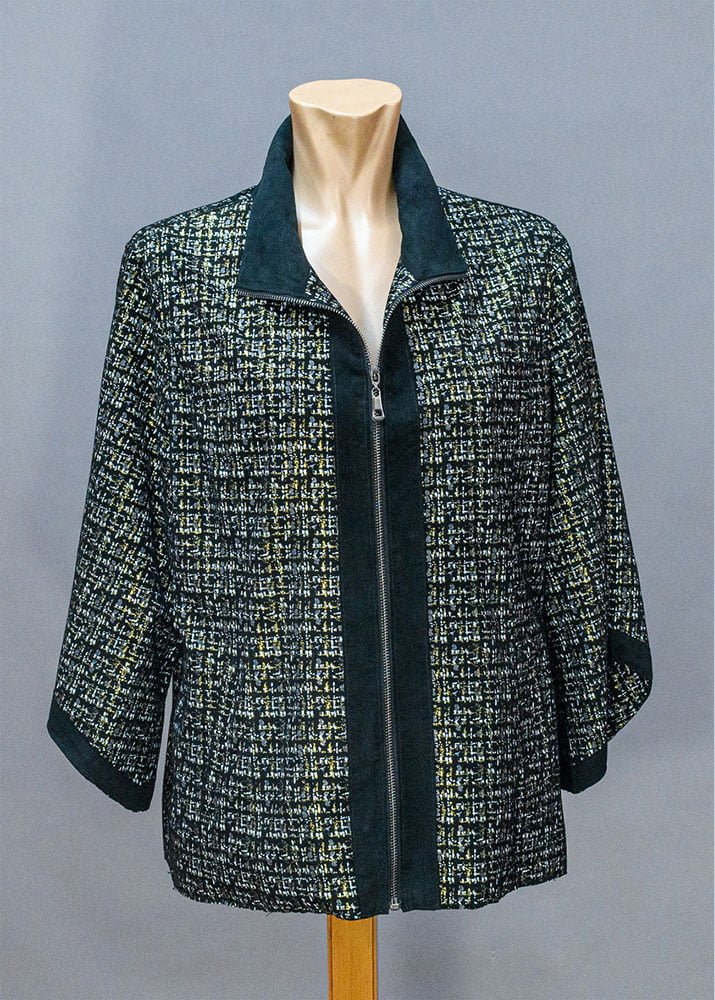 Δερμάτινη γυναικεία ζακέτα χρώματος μαύρο με καστόρι σταμπαριστό τύπου ύφασμα από 100% μαλακό δέρμα κατσίκι.