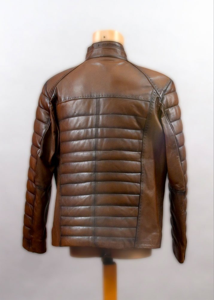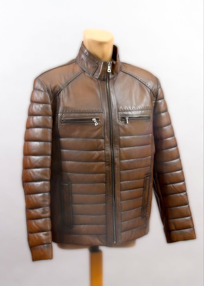 Δερμάτινο καπιτονέ ανδρικό μπουφάν χρώματος antique από 100% μαλακό δέρμα αρνιού σε επεξεργασία νάπα.