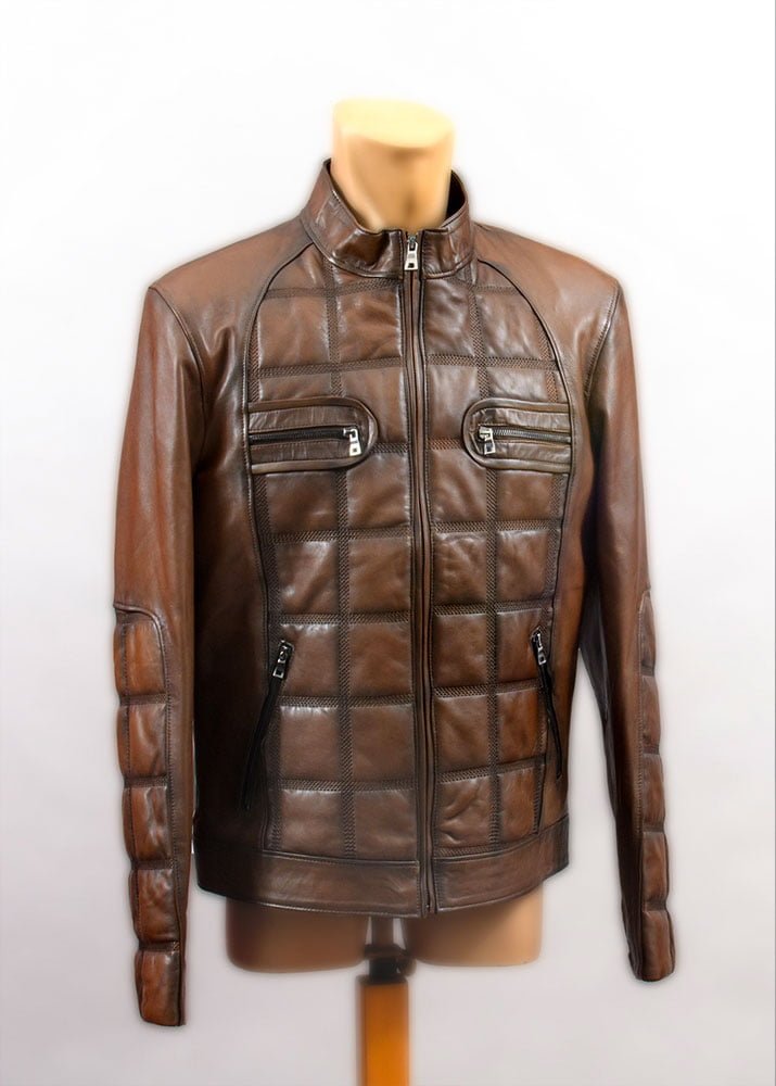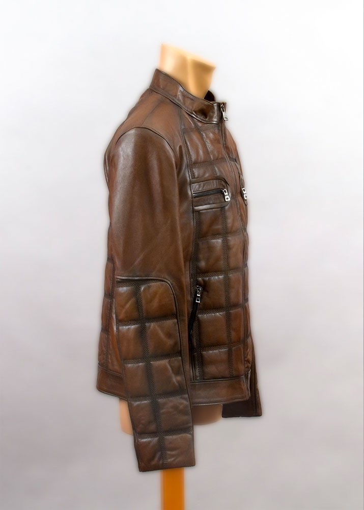 Δερμάτινο καπιτονέ ανδρικό μπουφάν χρώματος antique από 100% μαλακό δέρμα αρνιού σε επεξεργασία νάπα.