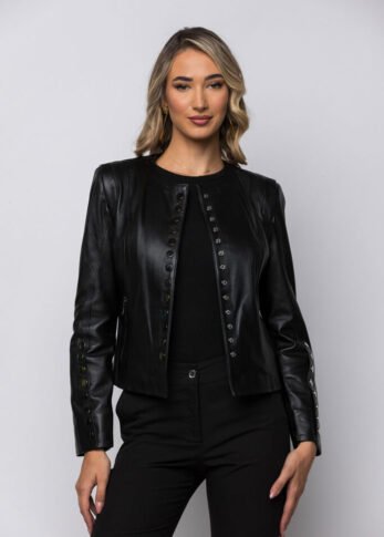 Δερμάτινο ανδρικό μπουφάν χρώματος χακί με καπιτονέ στον ώμο και τα μανίκια από 100% μαλακό δέρμα αρνιού σε επεξεργασία νάπα.