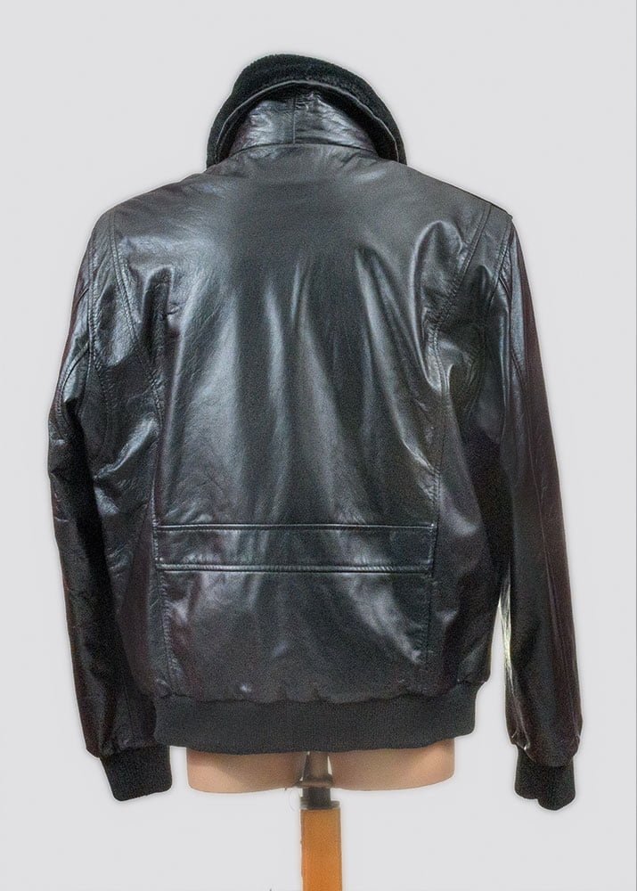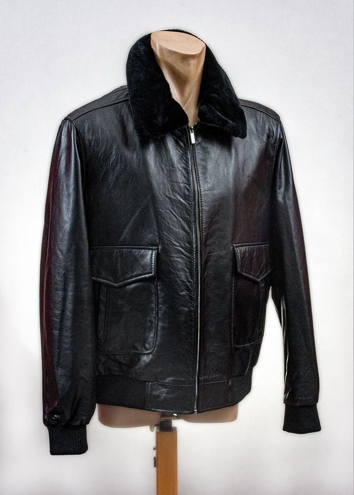 Δερμάτινο ανδρικό μπουφάν χρώματος μαύρο με πλεκτό λάστιχο στο τελείωμα και αποσπώμενο γούνινο γιακά από 100% μαλακό δέρμα αρνιού σε επεξεργασία νάπα.
