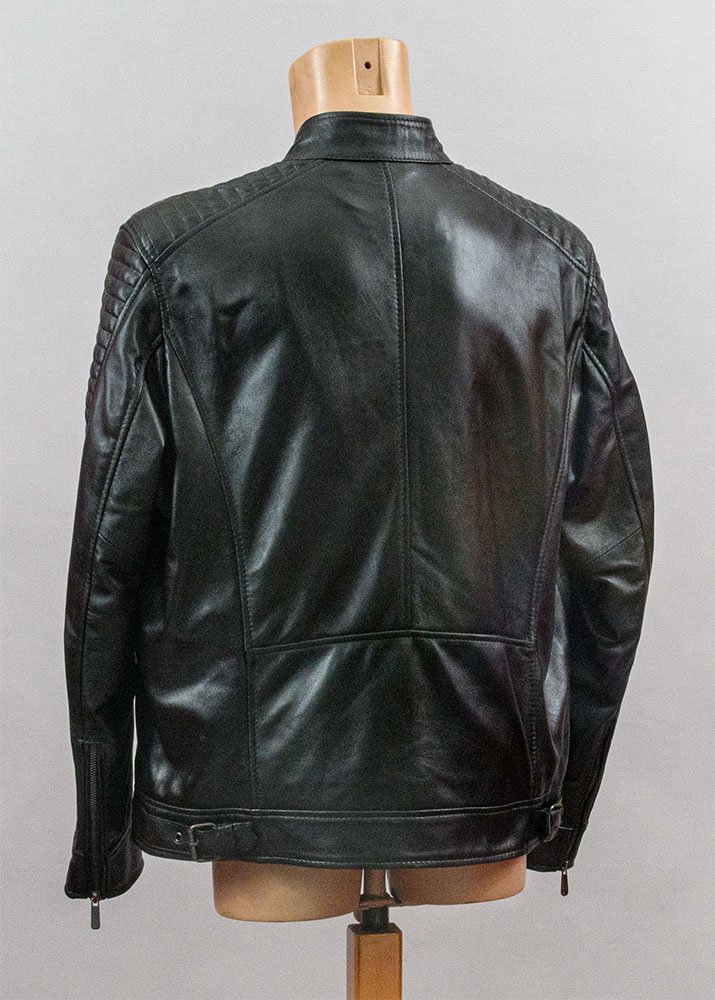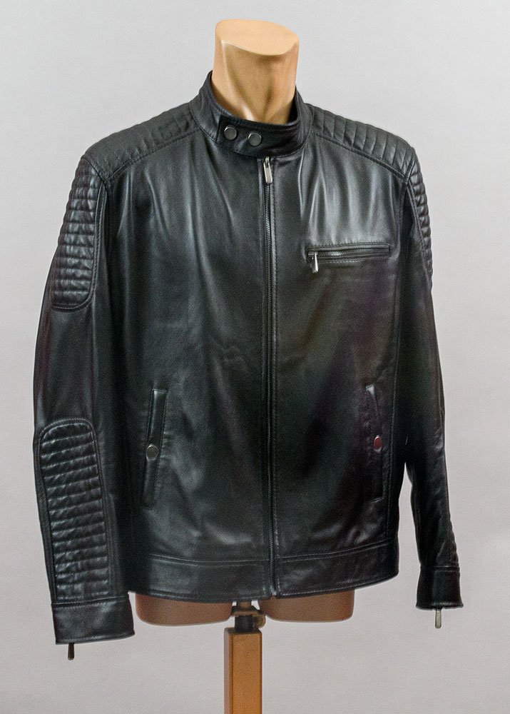 Δερμάτινο ανδρικό μπουφάν χρώματος μαύρο με καπιτονέ στον ώμο και τα μανίκια από 100% μαλακό δέρμα αρνιού σε επεξεργασία νάπα.