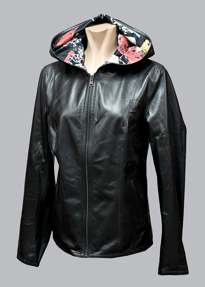 Δερμάτινο γυναικείο μπουφάν χρώματος μαύρο διπλής όψεως με δύο εξωτερικές τσέπες από κάθε πλευρά και αδιάβροχο ύφασμα εσωτερικά από 100% μαλακό δέρμα αρνιού σε επεξεργασία νάπα.