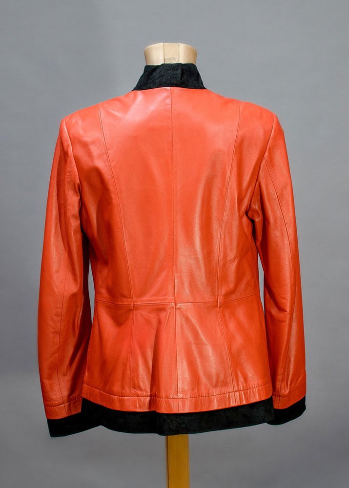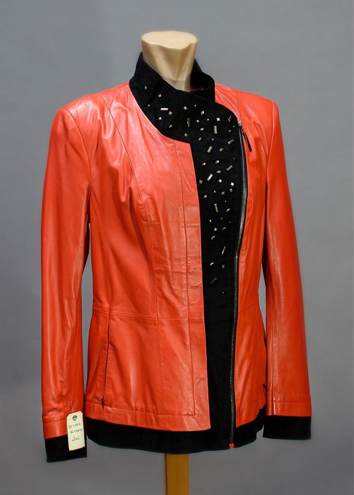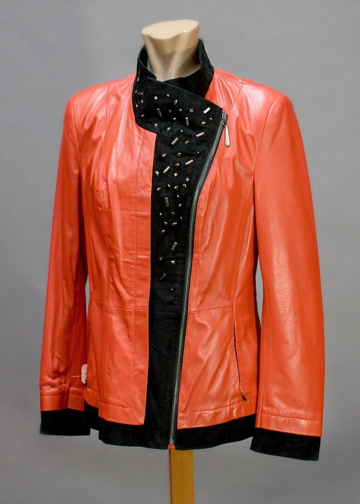 Δερμάτινο γυναικείο μεσάτο μπουφάν χρώματος ροδί σε συνδιασμό με καστόρι και στρας από 100% μαλακό δέρμα αρνιού σε επεξεργασία νάπα.